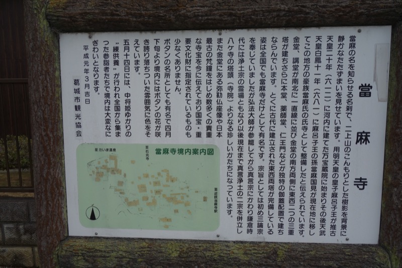*結局、私は現地で計画を大幅に変更したのです。生駒山から信貴山までは時間的に歩ききれないので、天気が良ければ夜景展望ドライブも考える、というのが1日目。2日目は昨年奈良の「山の辺の道」でず〜っと視野の中にあった二上山(にじょうざん)から金剛山に向かって行けるところまで……と金剛生駒国定公園を北から南へ進んでみるという表現にミニチェンジ。奈良の歴史を背負う「二上山當麻寺(たいまでら)」から登ることにしました。