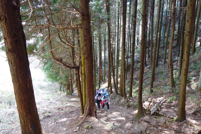 登山道が人工林の側に入り込んでしっかりした道すじを延ばしています。