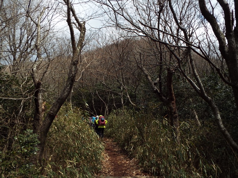 道は雄岳と雌岳の鞍部から下ってくる谷筋を登っていきます。地形図の描写どおりです。