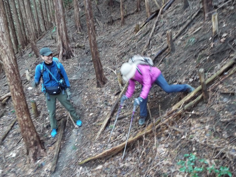 竹内峠まで下って標高約300m。そこから標高403mの無名峰へと登っていく道です。ダイヤモンドトレイルは近畿地方の有名登山道ですから、徹底的に補修工事がなされているようです。