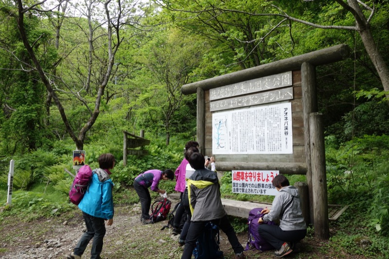 アオネバ渓谷の登山道入口には詳細な案内板がありました。そこにはここで見られる花の名前が次のように書かれていました。