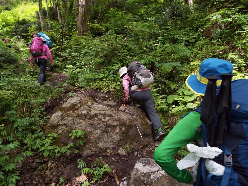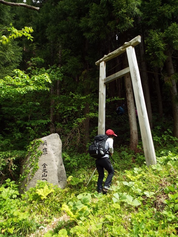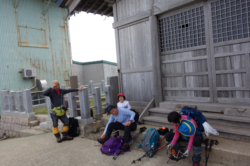 *1日目は1330アオネバ登山口(標高約300m)→1525-35アオネバ十字路(大佐渡山脈縦走路、標高約800m)→1610ドンデン山荘(標高約900m)