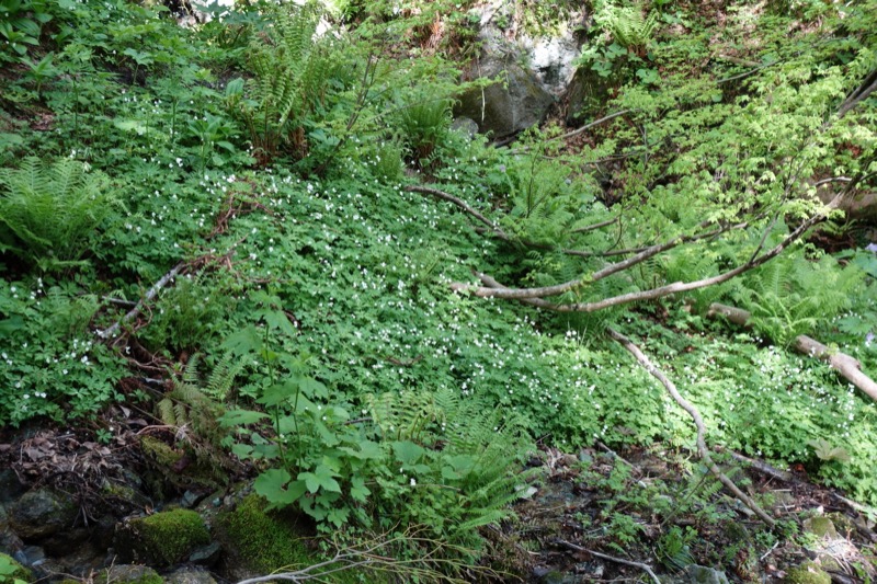 登り始めから下草は豊かですが、花がそんなにたくさん出てくるなんていう話は、まだ信じられていないかもしれません。