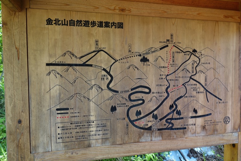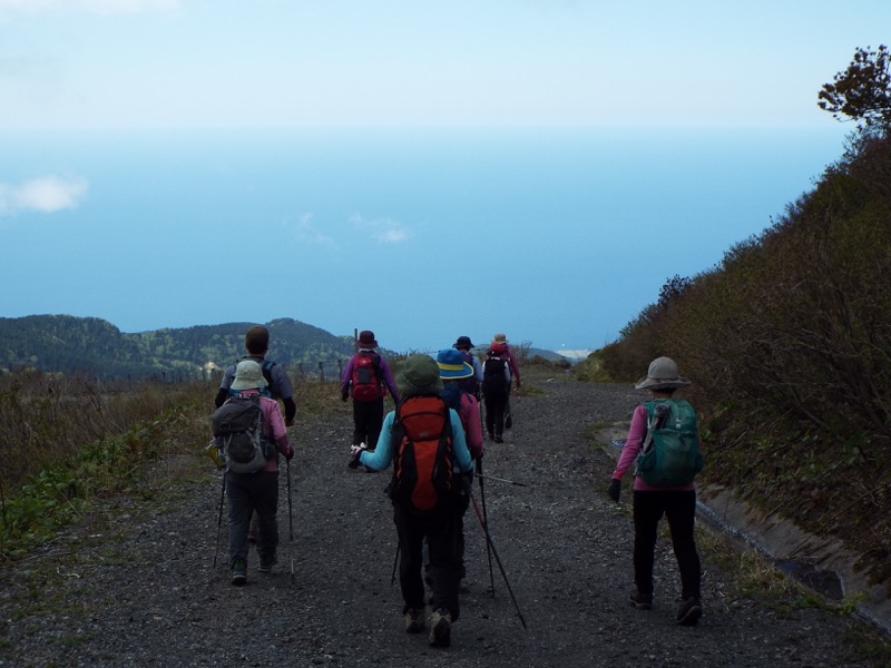 *2日目は0540沢口登山口(標高約350m)→0945-30金北山山頂(標高1,172m)→ドンデン高原方面への縦走を取りやめ、自衛隊管理地を抜けて大佐渡スカイライン白雲台展望台へ。