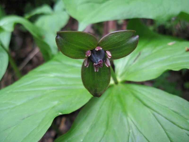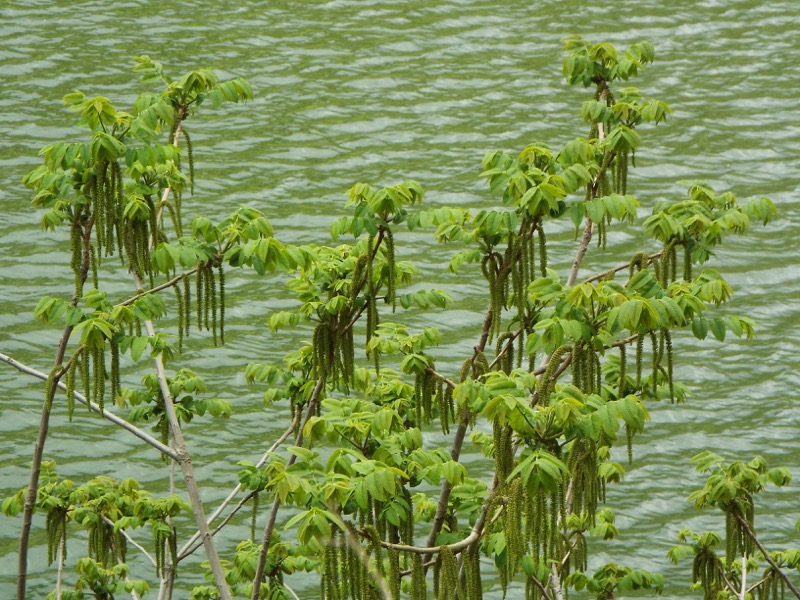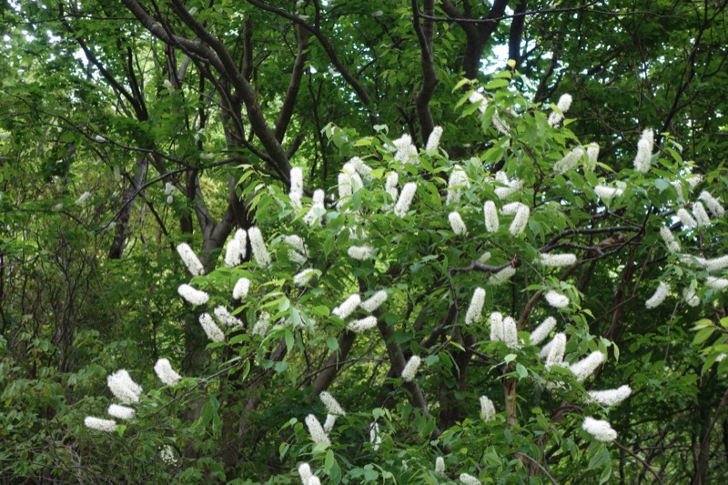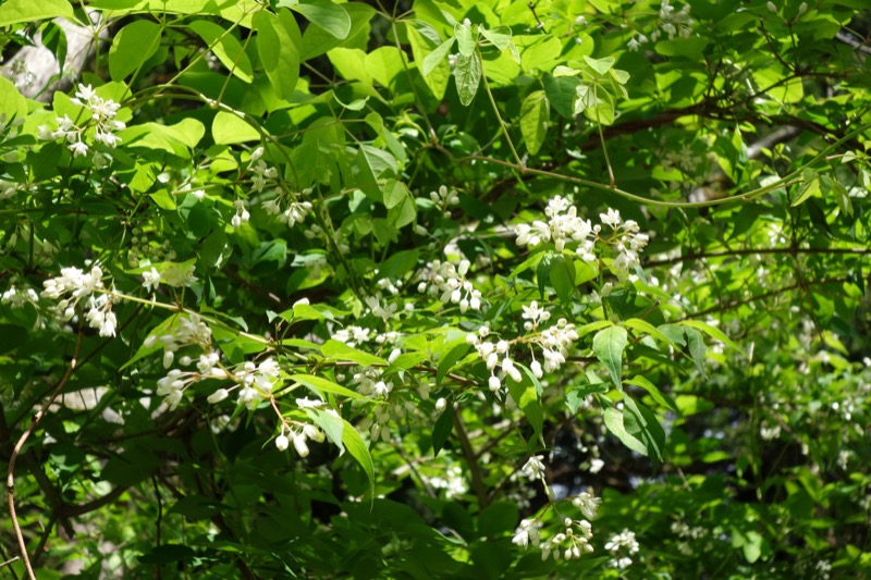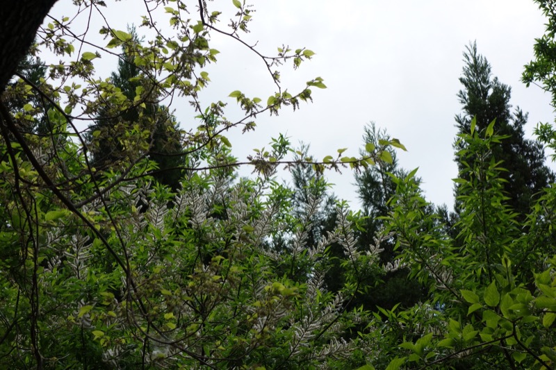 *6月24日に岡田 恭子さんから「オオヒョウタンボクではなくハナイカダではないでしょうか?」というメールがきました。まさにそうです。苦し紛れに書いたキャプションです。花を知っているというより、花名の出て来る文字情報に引き込まれてしまうという悪弊です。オオヒョウタンボクは葉の中央に赤い瓢箪のような身がついて、その前には白い花が咲いている姿はもちろん知っているのですが「ハナイカダ」のイメージがあいまいで、花名も出てきませんでした。すみません、訂正させていただきます。