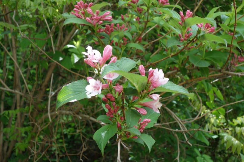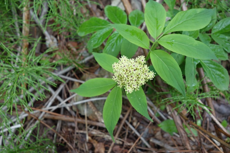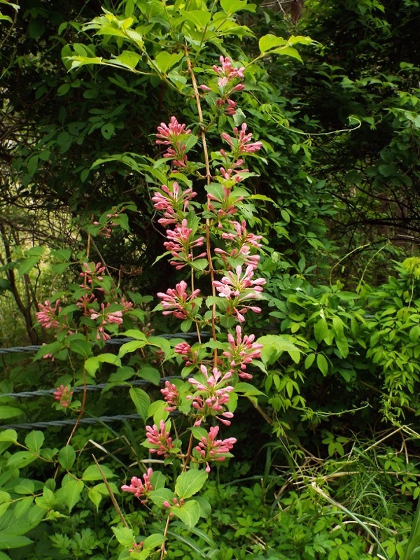 ヒョウタンボクの仲間のように思います。北アルプスではオオヒョウタンボクを各地で見ますが、これは以前、だれかがアラゲヒョウタンボク(粗毛瓢箪木)と教えてくれたように思います。花が開いて、葉っぱももう少し広がるとそれを確信できるかもしれませんが。佐渡に自生して、大葉瓢箪木とも。