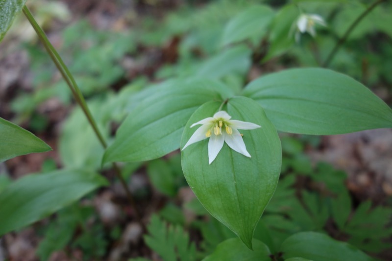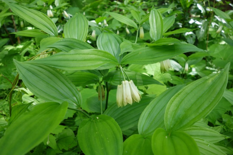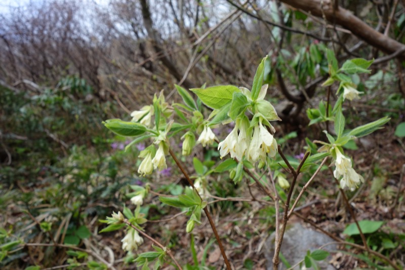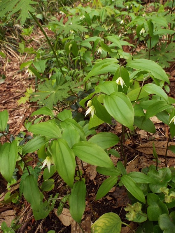 枝先に1個か2個の花が吊り下がるホウチャクソウ。宝鐸草と書くのだそうです。花の色は淡緑白色だそうですが、ここでは黄色を帯びているのでいくぶんトウが立っているのかも。日本全土に生えるごくありふれた植物とか。