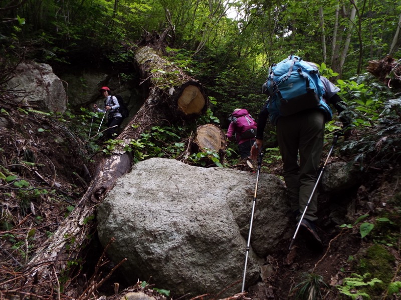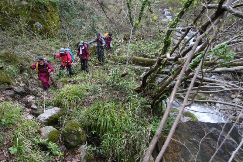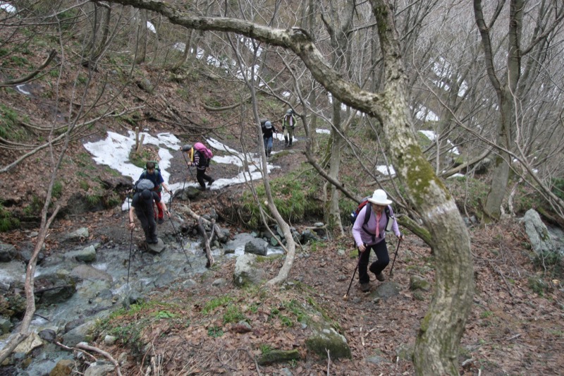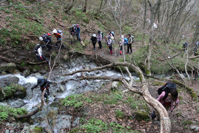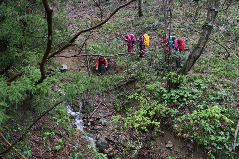 小さな沢を横切るとき、山の穏やかさがわかります。丹沢だったら、こんな小さな沢でも、道すじに浸食パワーを感じさせます。ときには山の崩壊につながっていきそうな未来も見えます。