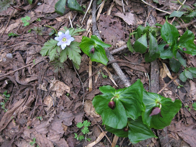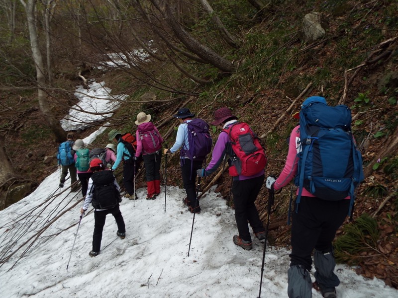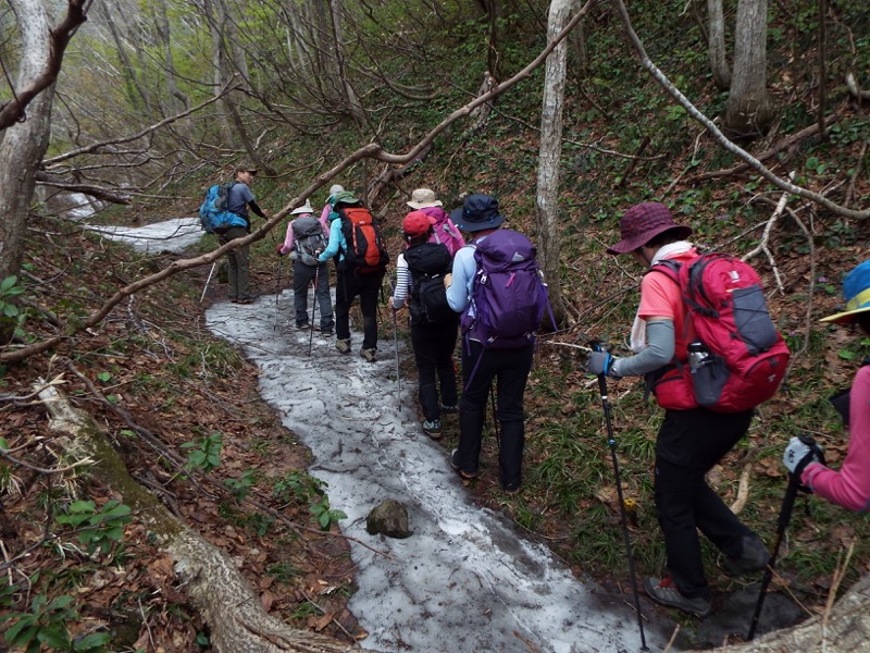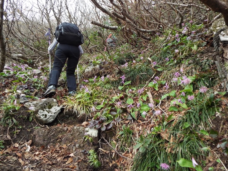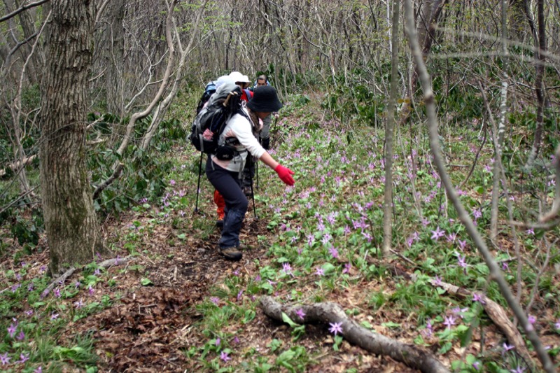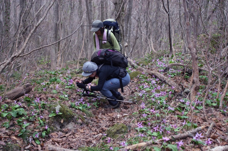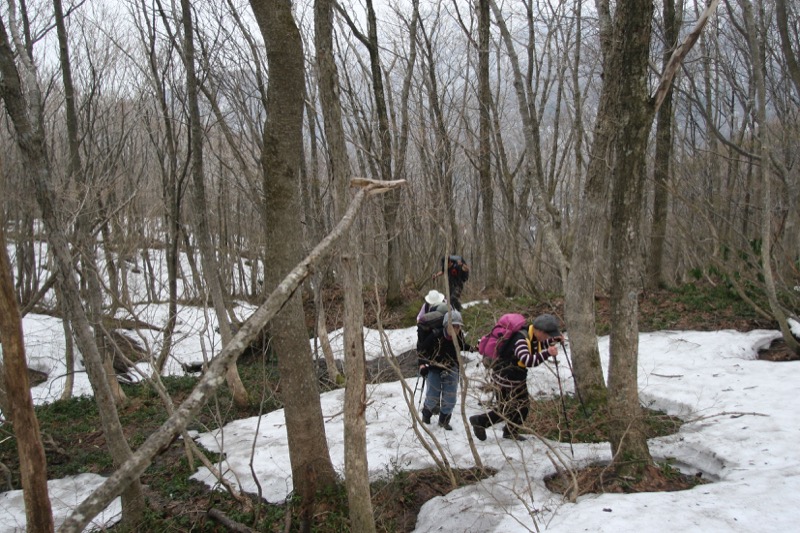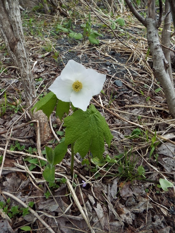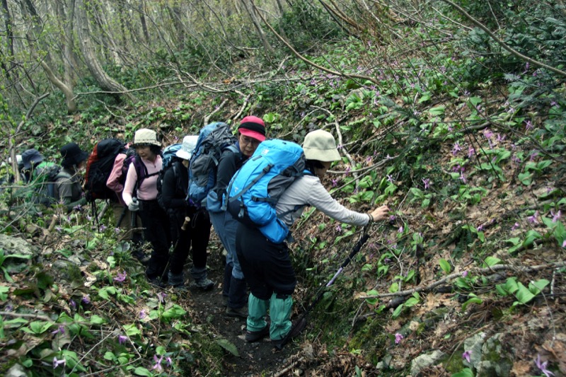 *計画書には次のように書きました。 「1日目にアオネバ登山道、2日目に沢口登山道というこれまで同様の計画です。両地域を比べるとアオネバ登山道が1週間以上早く雪解けしていくという感じです。山の稜線に雪が残っていれば、そこに至る道筋でオオミスミソウやカタクリ、シラネアオイやキクザキイチゲを楽しめると考えていいのです」