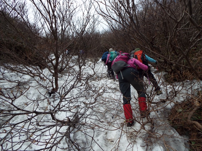 ・1130-40……残雪出現・アイゼン装着休憩(標高約750m)