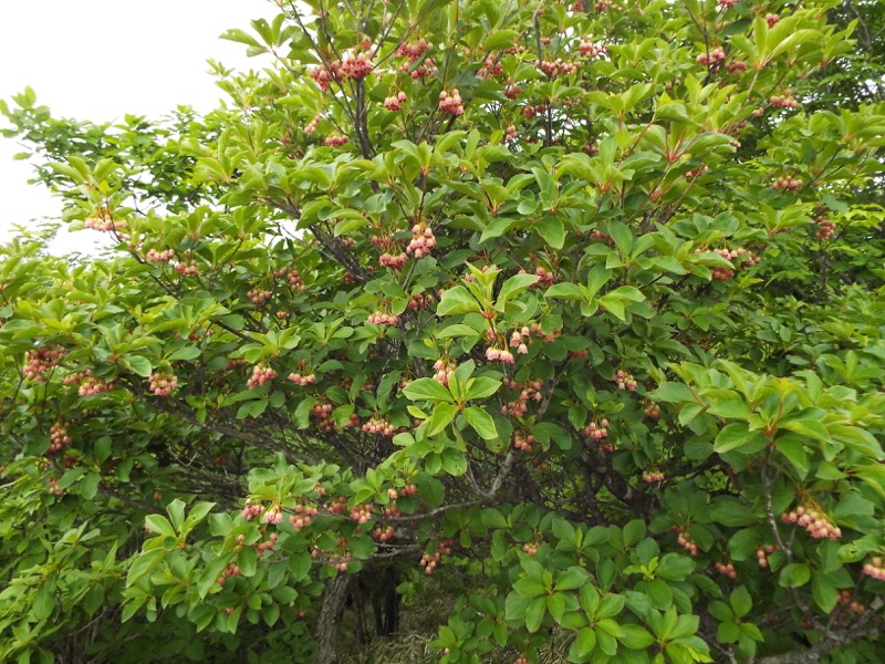 山頂にサラサドウダン。ドウダンは漢字では灯台というのもちょっと不思議なら、ドウダンツツジがいわゆるツツジとはちょっと遠い親戚で、アセビやコケモモの仲間とか。アセビと近縁だといわれると納得です。