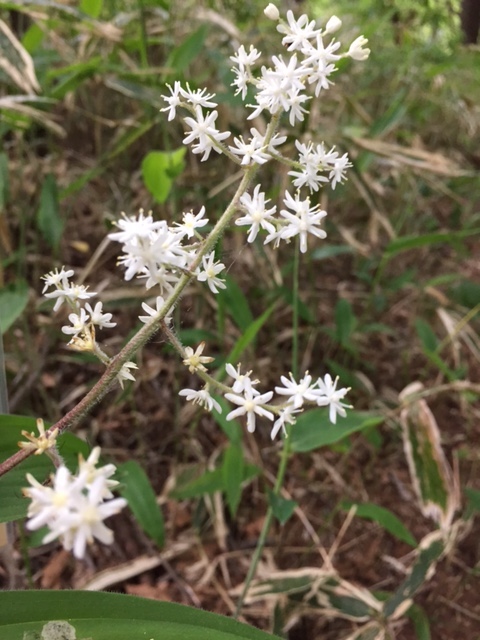 ハルナユキザサの花ですが、ユキザサとまったく同じみたい、笹の葉に散る雪という景色。