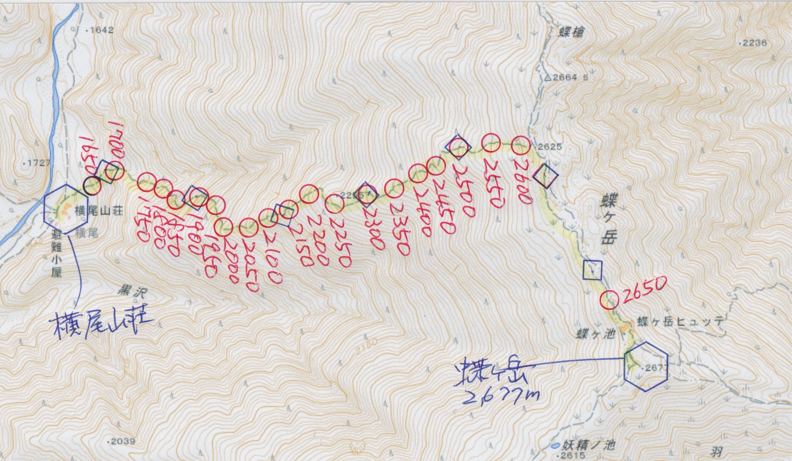 0700ごろ_蝶ヶ岳ヒュッテを出発────稜線3パワーを30分として