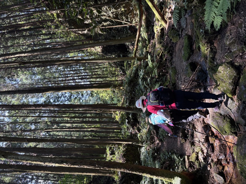 ────1245-1300ごろ_日和田山(ひわださん)山頂で休憩(標高約305m) 1310ごろ_金刀比羅(ことひら)神社から女坂を下る(標高約250m) 1320ごろ_男坂との分岐(標高約170m) 1335-40ごろ_登山道終点でトイレ休憩(標高約120m) ────1350-1405ごろ_巾着田を横断