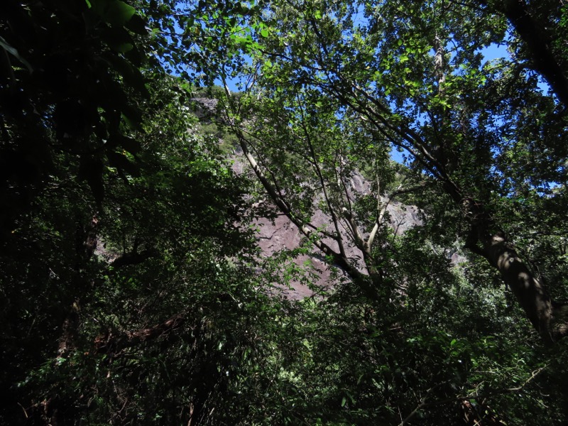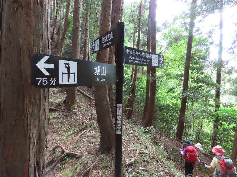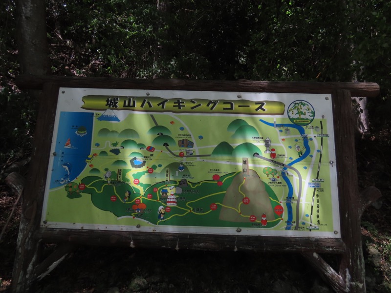 大仁駅から歩いていたら、この炎天下、登る前に意気消沈していただろうと、タクシーの中で思いました。城山のロッククライミング・ゲレンデの真下あたりが登山口。