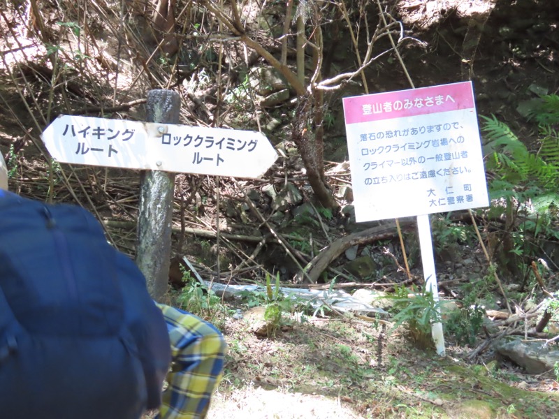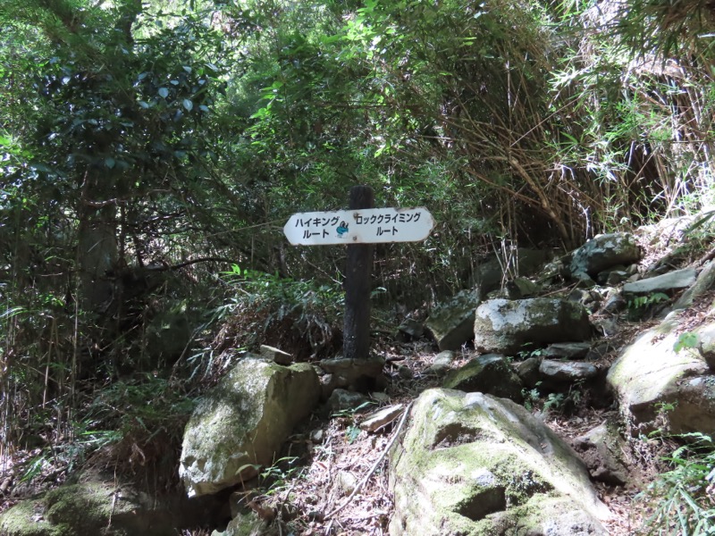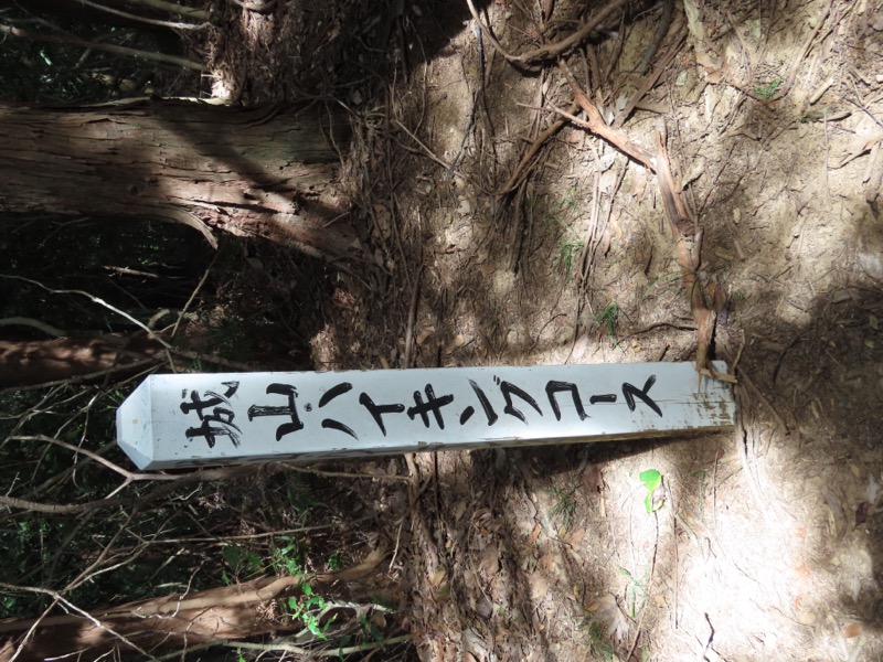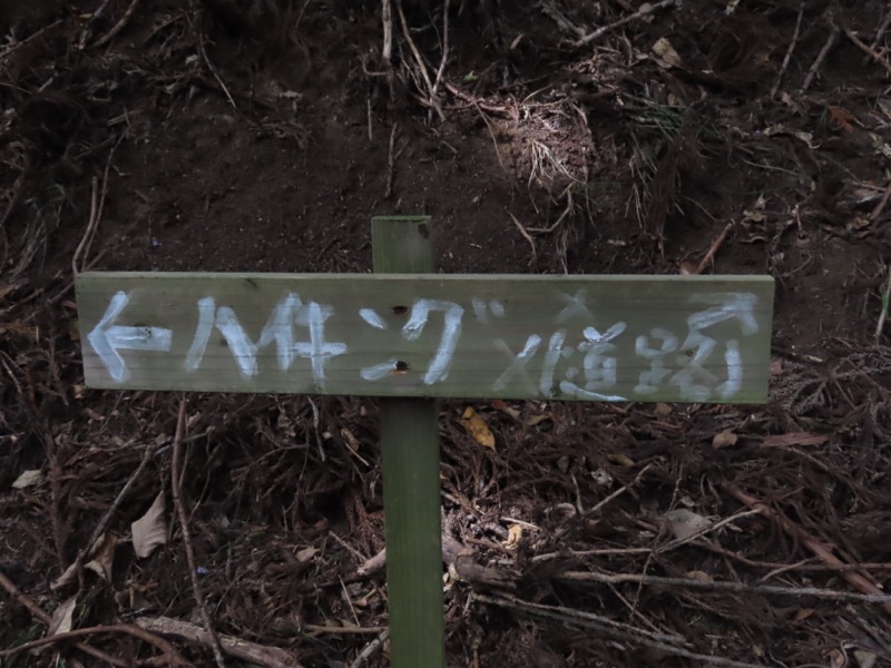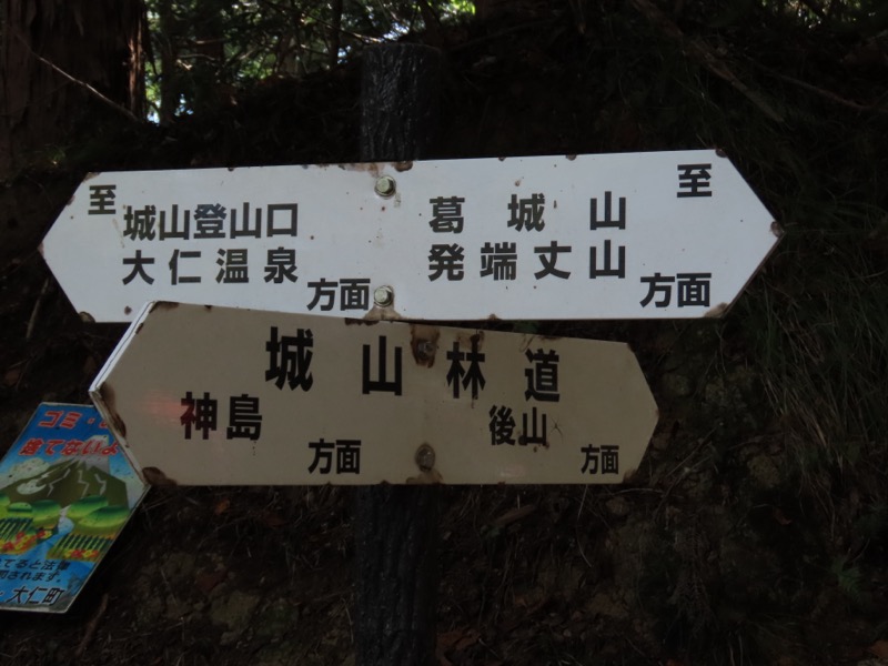 *その標識には「通行止め」や内山方面に「葛城山入園料必要2500円」という手書きの情報があり、内山方面への踏み跡道はあるが、地理院地図には載っていない。
