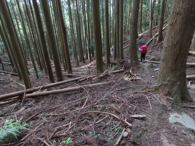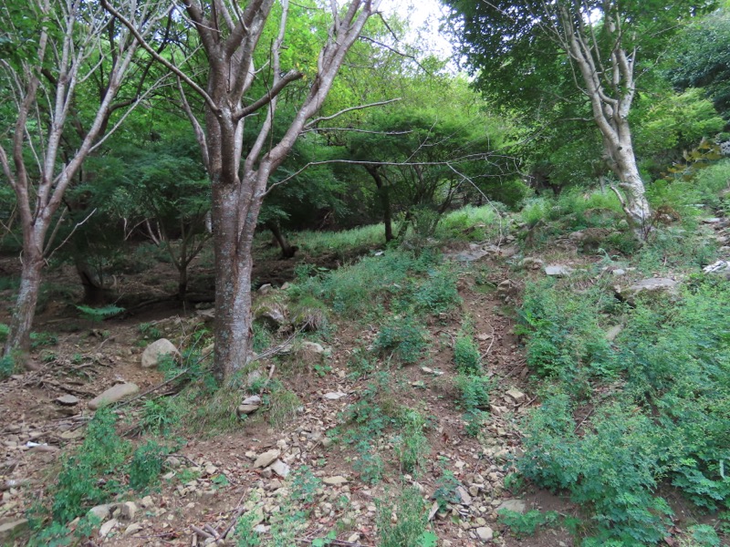 1505ごろまで_「閉鎖」されたという登山道(地理院地図には載っている)を偵察してみる。半年間放置されたというだけの雰囲気だが、深入りはしなかったので、閉鎖というより「整備しません」という感じに近かった。(標高約250m)