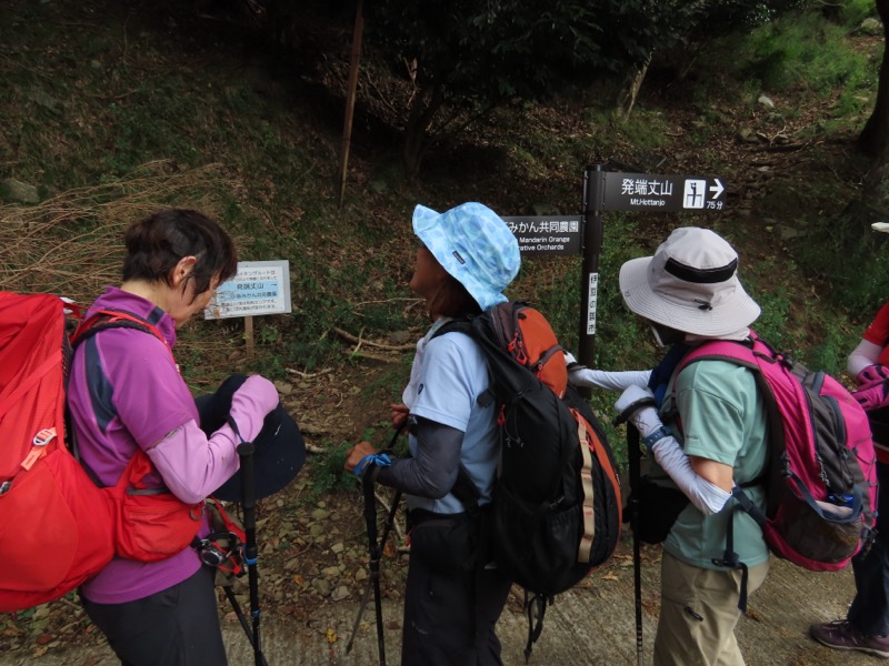 1425ごろ_発端丈山から葛城山に向かったときの分岐点(「鶯谷」という標識あり)に「葛城山」という名はなかったが、道筋としては「小阪みかん共同農園・60分」に間違いないのでそちらに向かう。(標高約300m)
