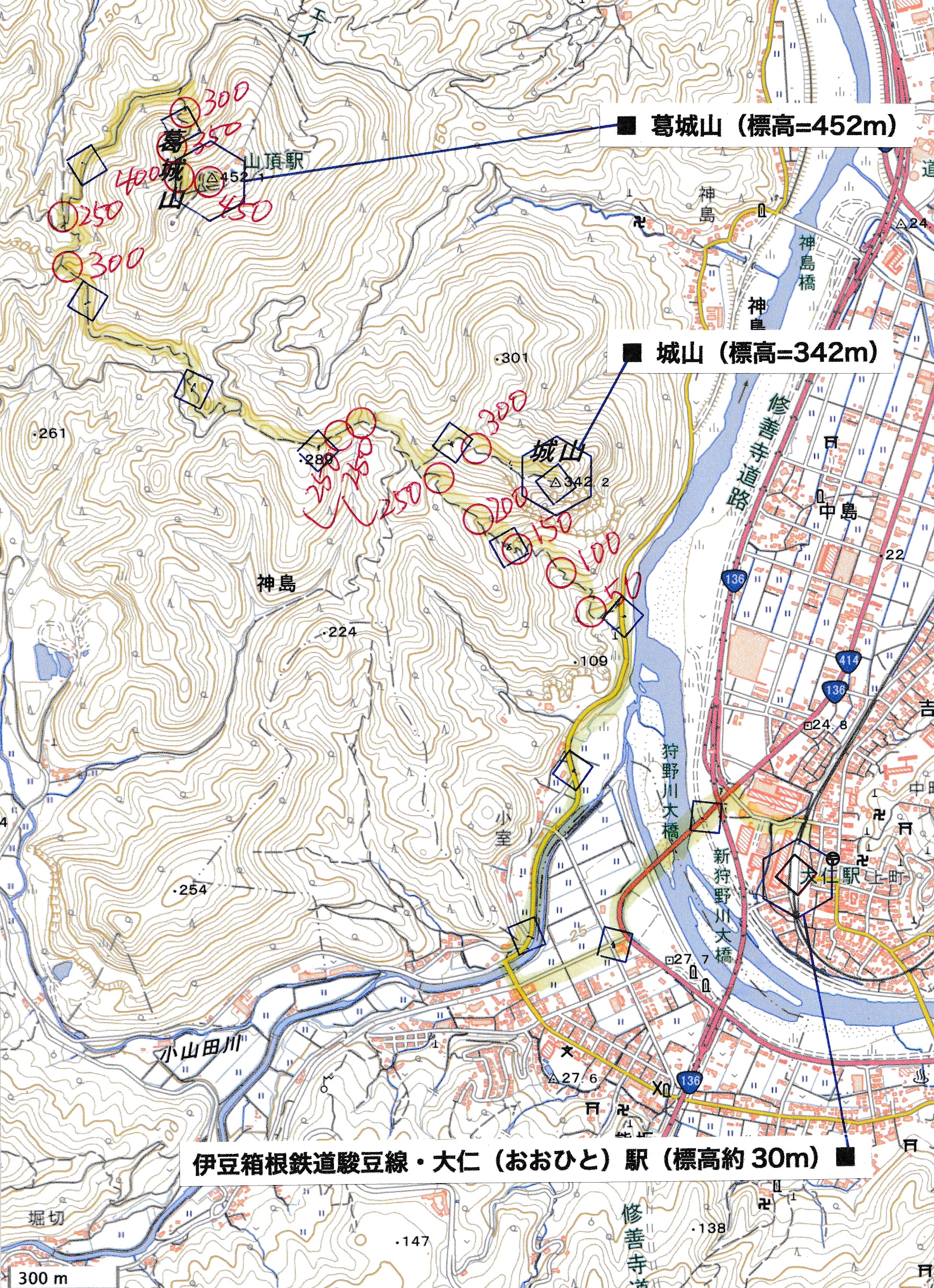 大仁駅に近づくにつれて、城山がどんどん大きくなってきました。