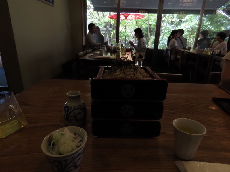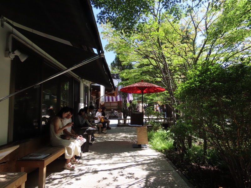 松本とその周辺にはそばの名店が星の数ほどあるという感じですが、老舗という感じなのはやはり「こばやし本店」。以前、ひとりで入ったら、仕事仲間のSさんという蕎麦好きがいたので「やっぱりうまいんだな」と思ったのです。ただ、松本のそばの名店がそれぞれ個性を尖らせている感じがあるとき、地元の人の口に合っているかというと、スマートすぎるかもしれない、という感じがありました。以前は支店が松本駅のすぐそばにあって、本店から運ばれてくるそばは登山者にはありがたいものでした。今回、久々に本店のそばを食べてみたいと思って出かけたら、四柱神社の入口に案内板があって、境内に誘い込まれたのです。するとガラス張りのすごい店がまえになっていて、11時開店を待つ人たちがベンチに列を作っていました。わたしはその最後尾についたものの、食べずにバスターミナルに戻らなければいけないかと心配したものの、食べられました。そばつゆも文句のつけようのない美味しさで、これで(このスマートさで)長野県民の口にもあうかな? とは思いましたが、世界に誇る「蕎麦」の名店としての飛躍としては大成功と感じました。