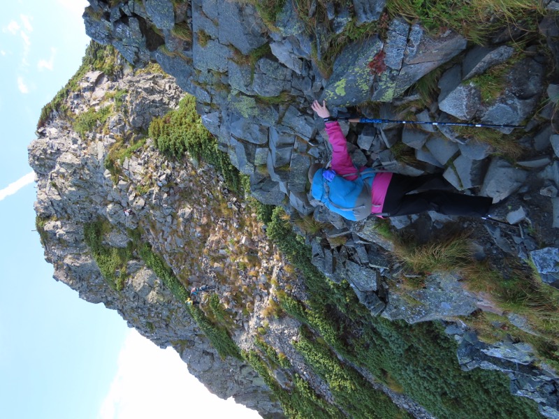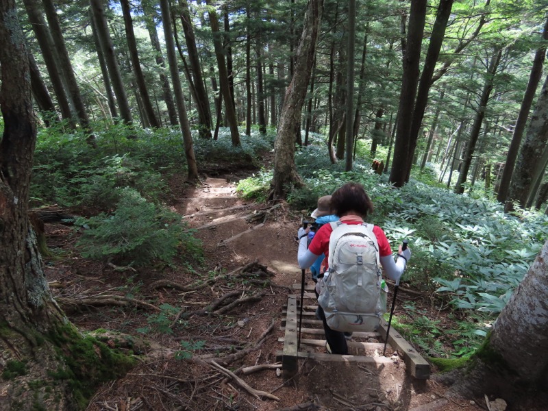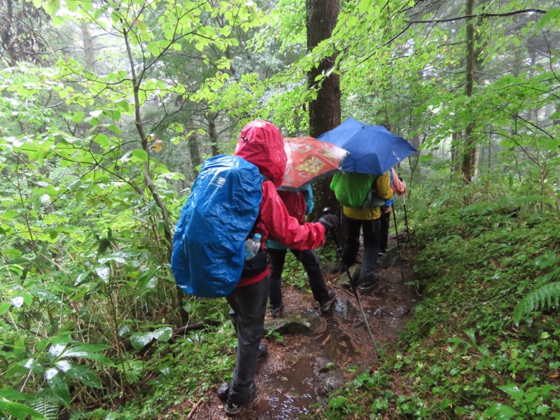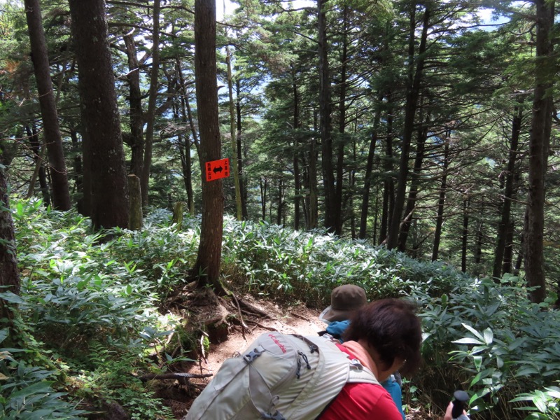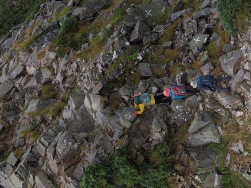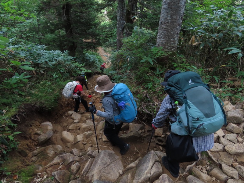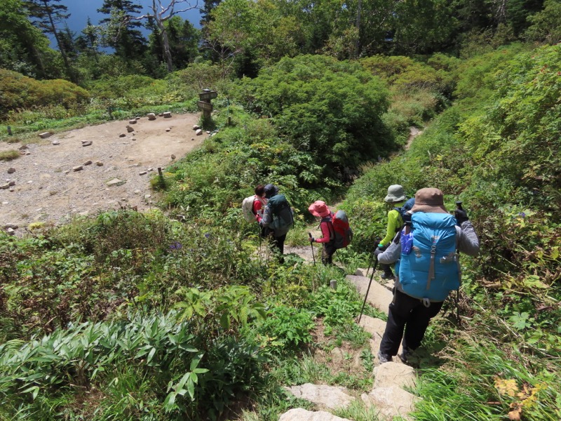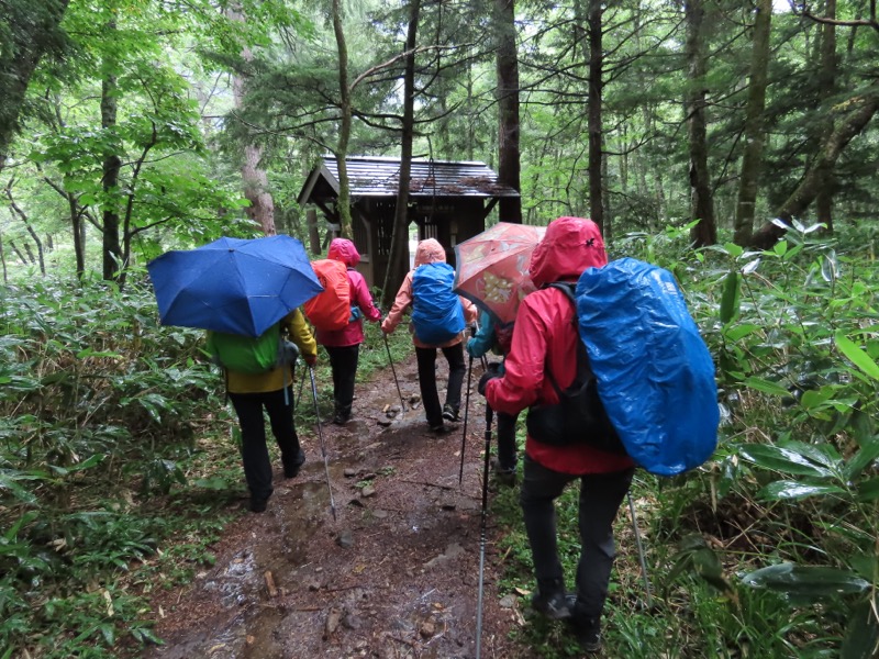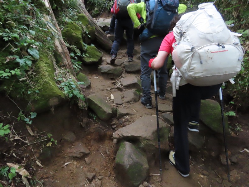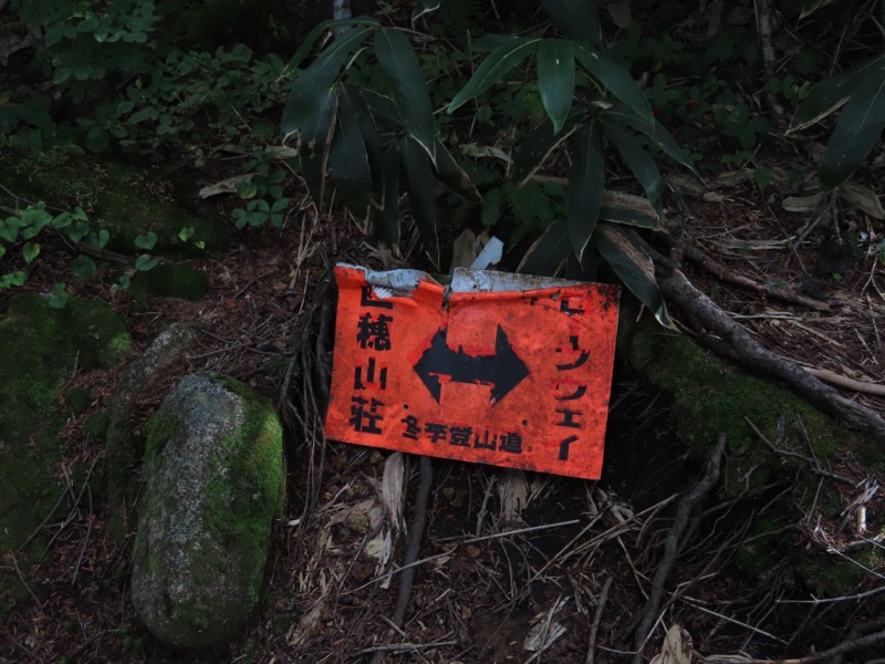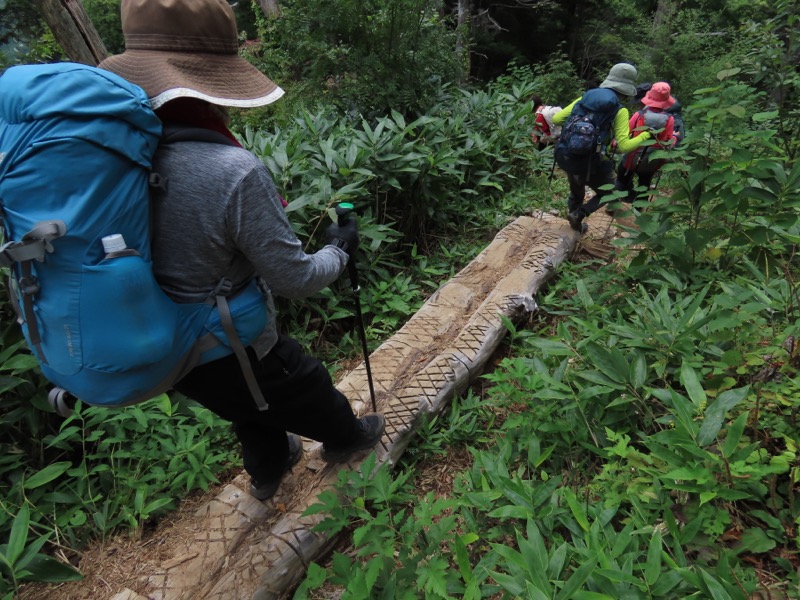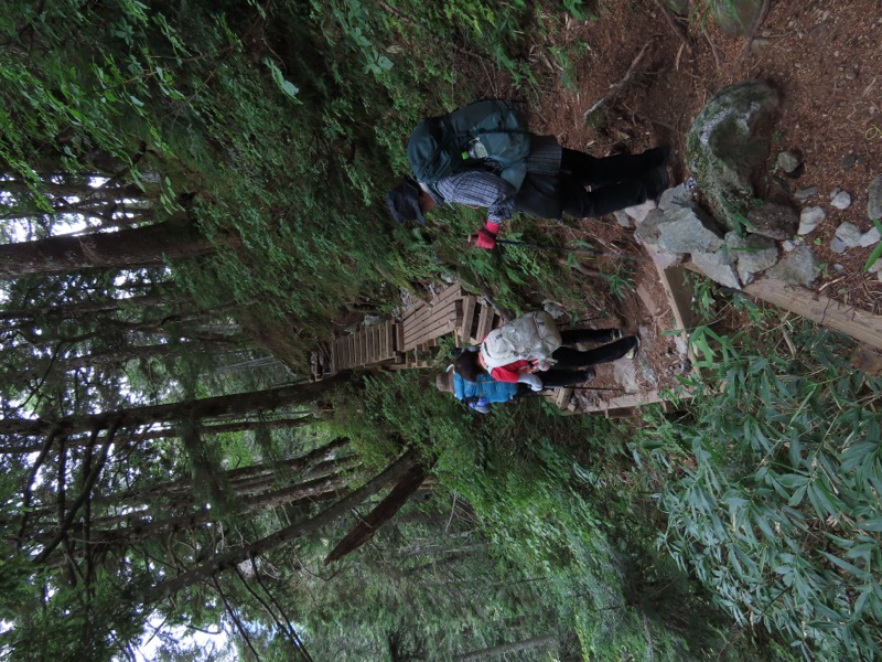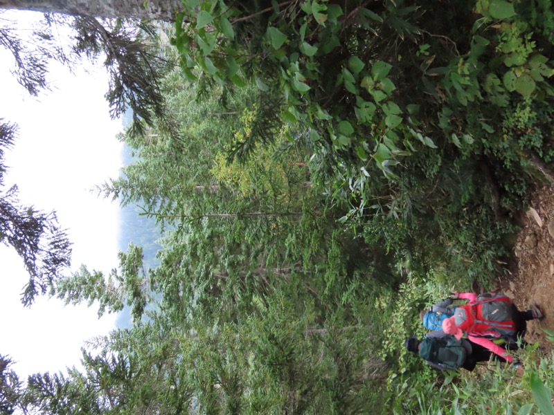 小屋泊まりは2回目というUさんには独標からのくだりに、補助ロープをつけさせてもらいました。落下防止のためではなく、猿回しのヒモ。要するにこまかな動作まで共有するための神経連結。私も神経質になりました。