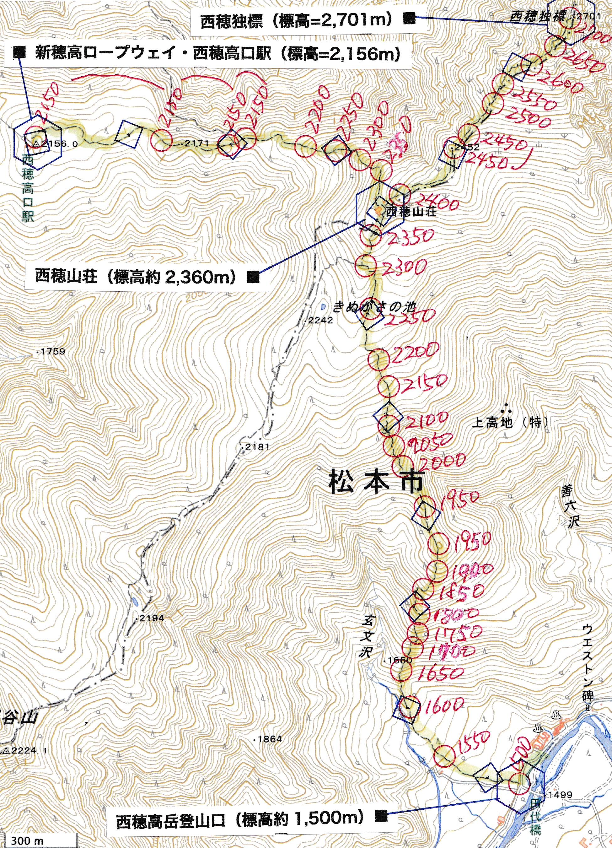1530ごろ_西穂高口駅を出発────稜線11パワーを1時間半として
