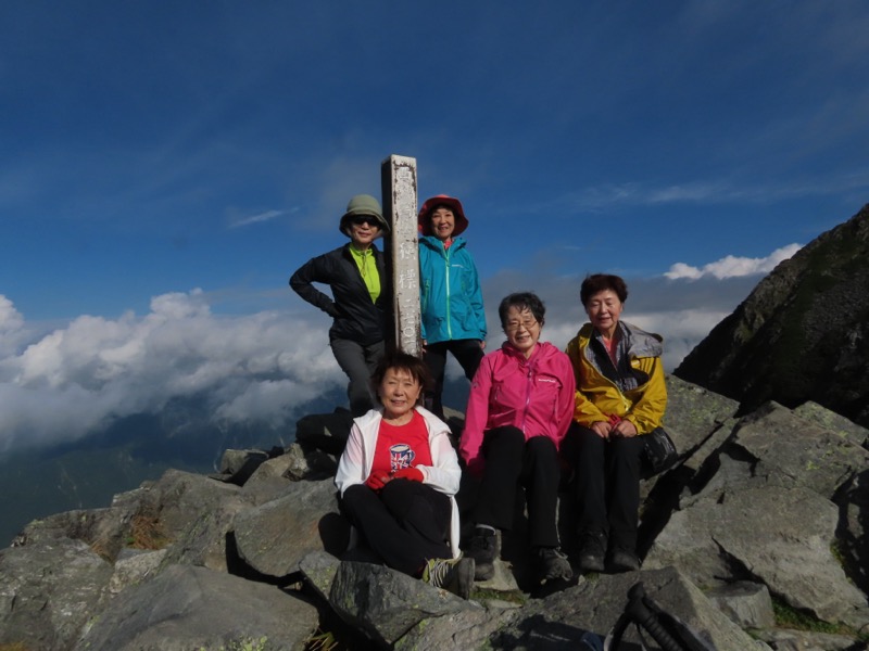西穂独標の先は難易度が上がって、ピラミッドピーク(2,750m)の次が西穂高岳(2,909m)、糸の会では2006年、2010年、2012年と3回登っているはずです。雲がかかっていなければ、その先がどんどん高くなっていき、糸の会には手の出せない難所を抜けて奥穂高に至るのです。このなかのふたりは糸の会で西穂高岳に登っていますね。