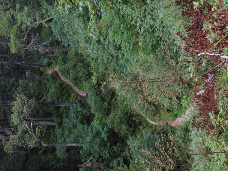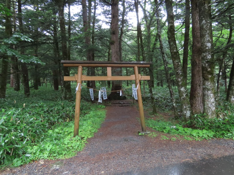 この登山道の終わりに、唐突に門が出現するのです。名前は知りませんが、この門の前は梓川。西穂独標から上高地まで標高差1,200mほどの下りでした。標高約3,100mの赤石岳から標高約1,100mの椹島(さわらじま)まで、標高差2,000mの一気下りと比べたら屁の河童だったかも。でも最後の最後で夕立につかまって記憶に残る1日になりました。