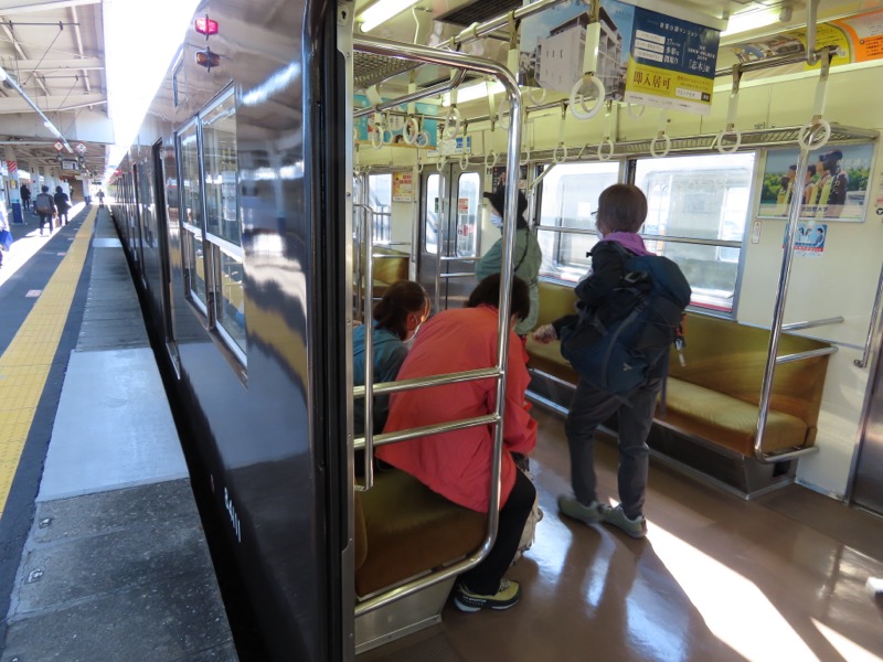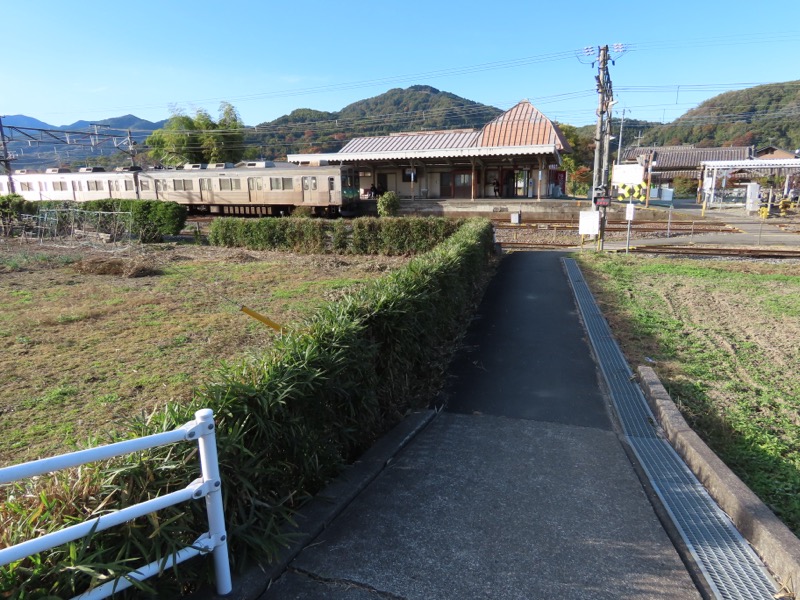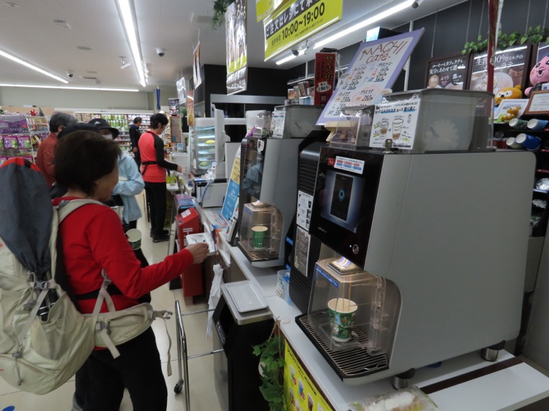 ────1355ごろ_関東ふれあいの道の舗装路が登山道に変わる(標高約500m) 1420ごろ_自動車道を横断。小休憩(標高約280m) 1440ごろ_秩父鉄道親鼻駅(標高約150m) ・長瀞駅まで歩く計画を変更して、次に来た電車で長瀞駅または皆野駅まで行き、そこで星音(せいね)の湯の無料送バスを待つことに決定。送迎バスは長瀞駅1530、皆野駅1540 ────1505ごろ_皆野駅に到着、ローソンのイートインスペースで時間待ち