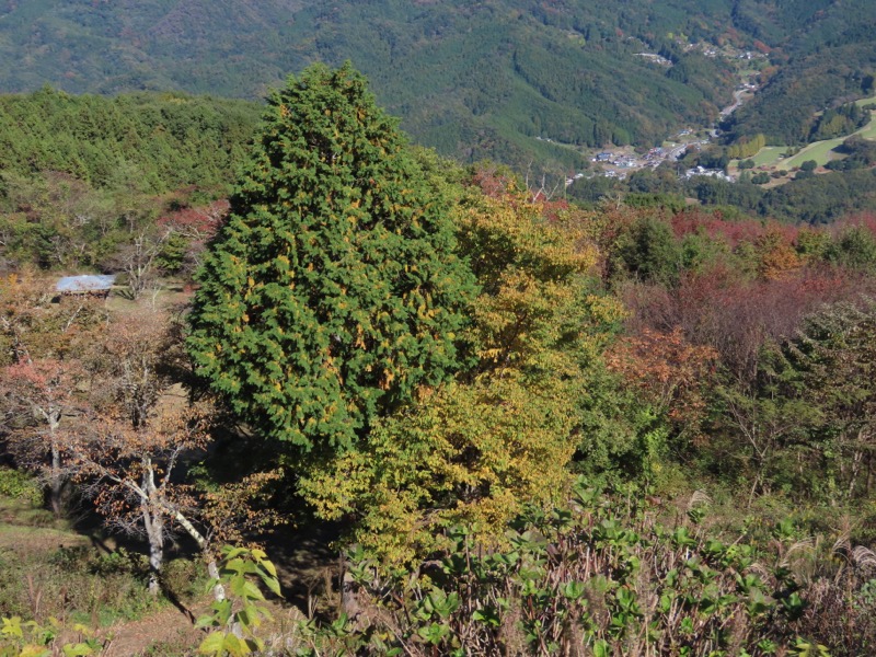 ────1140ごろ_集落を抜け、登山道始まる(標高約270m) 1225-30ごろ_休憩(標高約520m) 1245-1325ごろ_蓑山(美の山)山頂でゆったり休憩(標高=581m)