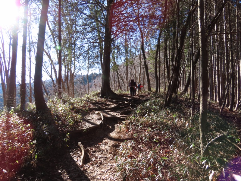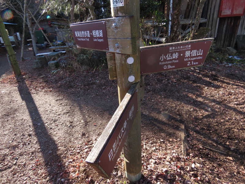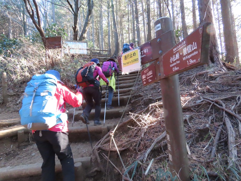 ────1220ごろ_堂所山登り口では巻き道を選択(標高約700m) 1340-55ごろ_景信山(標高=727m) ────1425ごろ_小仏峠(標高約548m)
