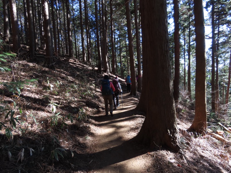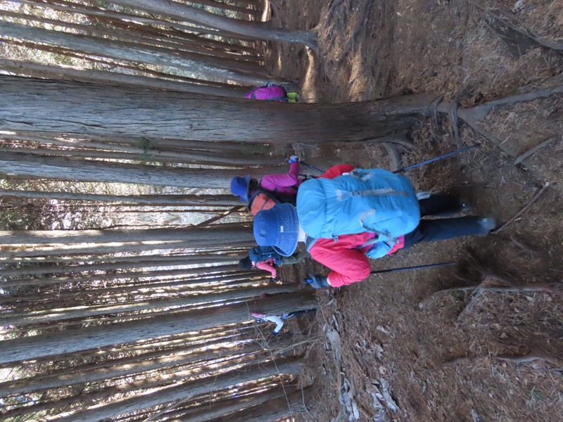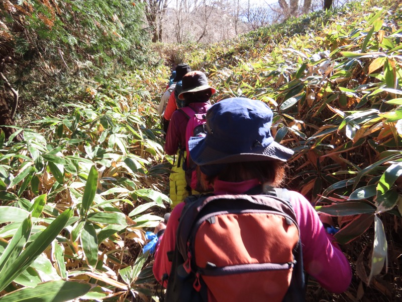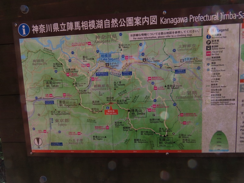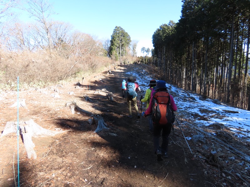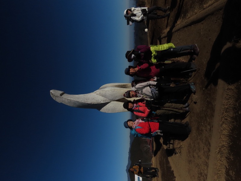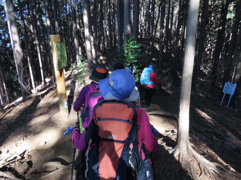 ────★計画書のJR時刻表が「平日」だったため「0808豊田始発1番線(大月行き普通列車)」が「0803豊田始発1番線(大月行き普通列車)→0811八王子4番線→0820高尾→0836上野原」となっていてリーダーが乗り遅れ「0845高尾始発→0902上野原」と20分ほどの遅れとなりました。 *0910ごろ_上野原駅でタクシー2台に分乗。一気に和田峠まで上がりました。 0950ごろ_和田峠を出発(標高約690m) ────1020-40ごろ_陣馬山(標高=855m)