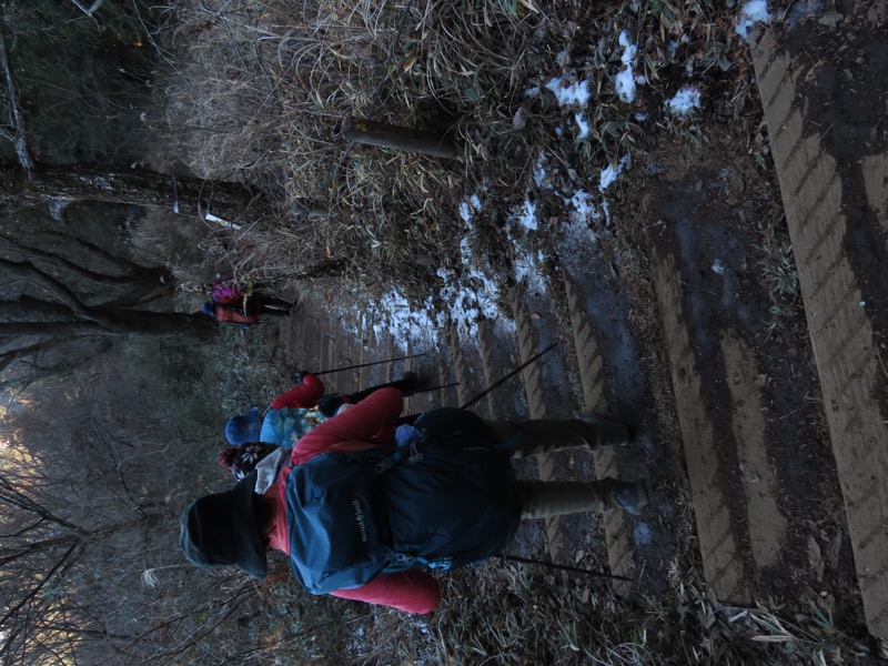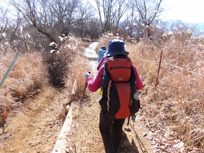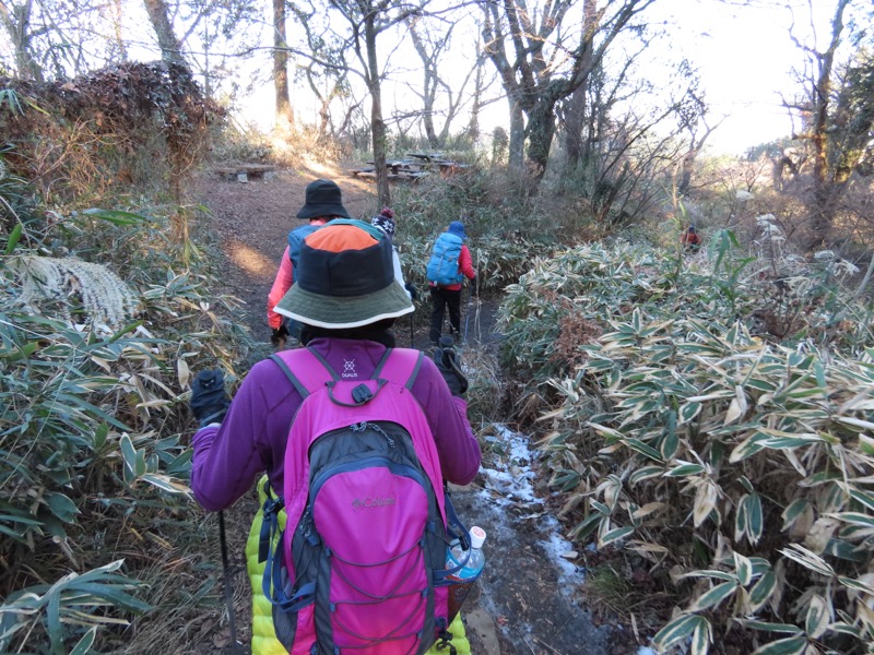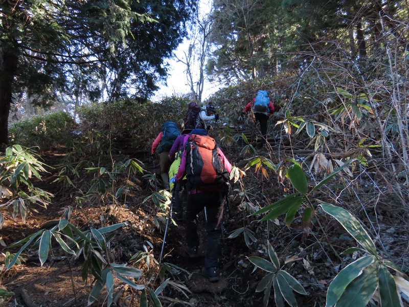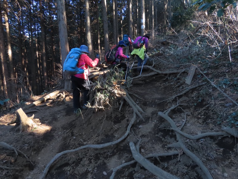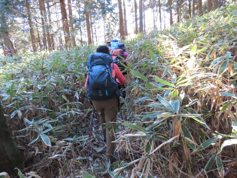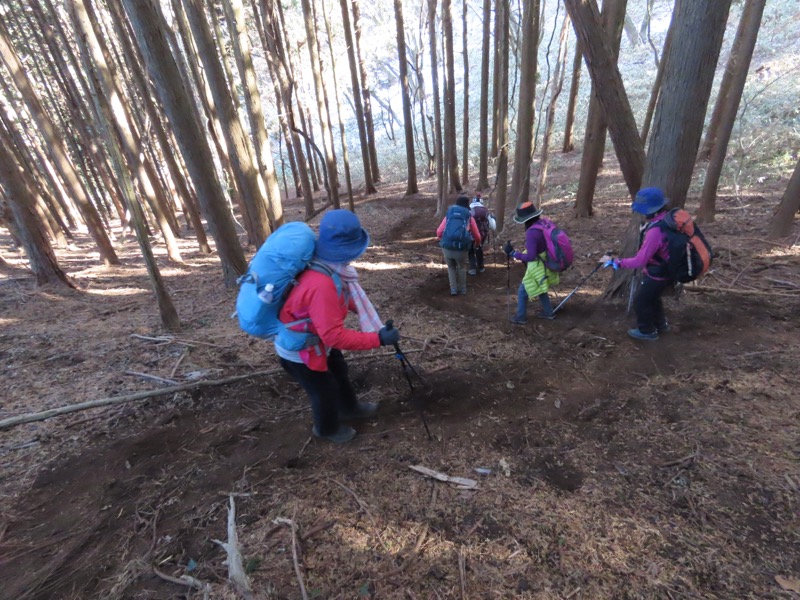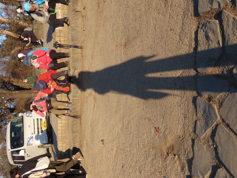 ────★計画書のJR時刻表が「平日」だったため「0808豊田始発1番線(大月行き普通列車)」が「0803豊田始発1番線(大月行き普通列車)→0811八王子4番線→0820高尾→0836上野原」となっていてリーダーが乗り遅れ「0845高尾始発→0902上野原」と20分ほどの遅れとなりました。 *0910ごろ_上野原駅でタクシー2台に分乗。一気に和田峠まで上がりました。 0950ごろ_和田峠を出発(標高約690m) ────1020-40ごろ_陣馬山(標高=855m)