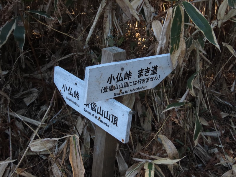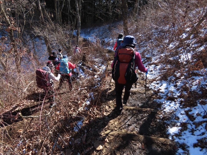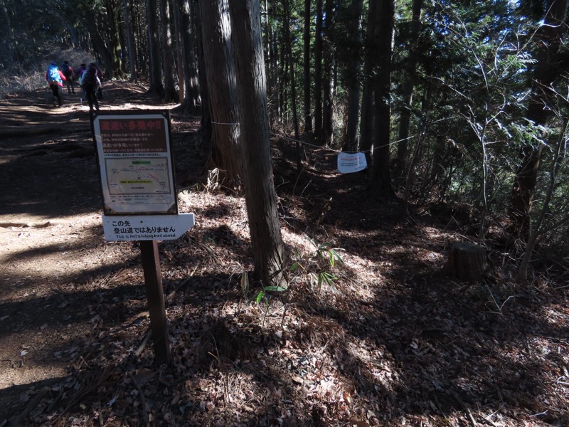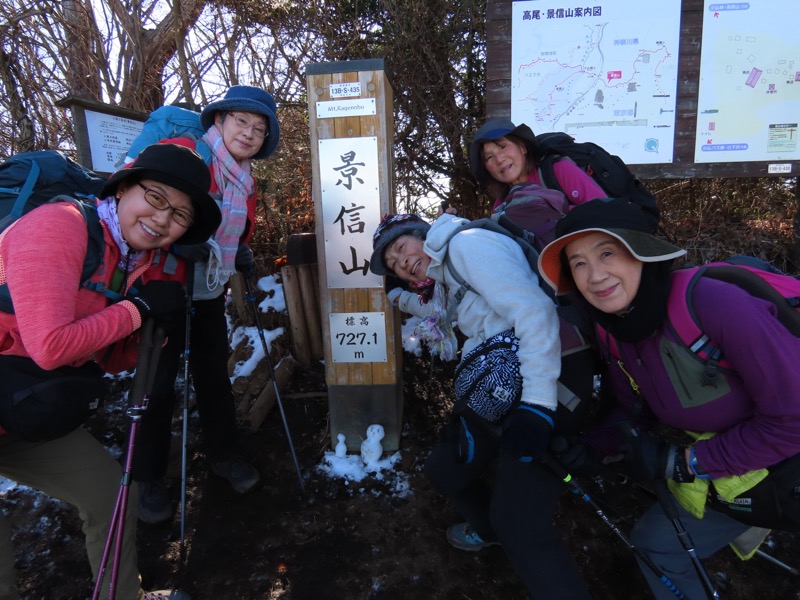 ────1135-1200ごろ_明王峠でトイレ休憩(標高約730m) 1220ごろ_堂所山登り口では巻き道を選択(標高約700m) ────1340-55ごろ_景信山(標高=727m)